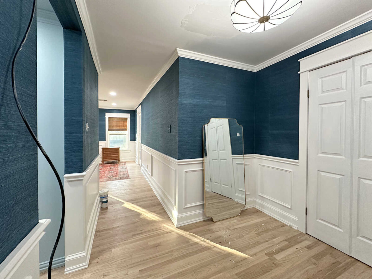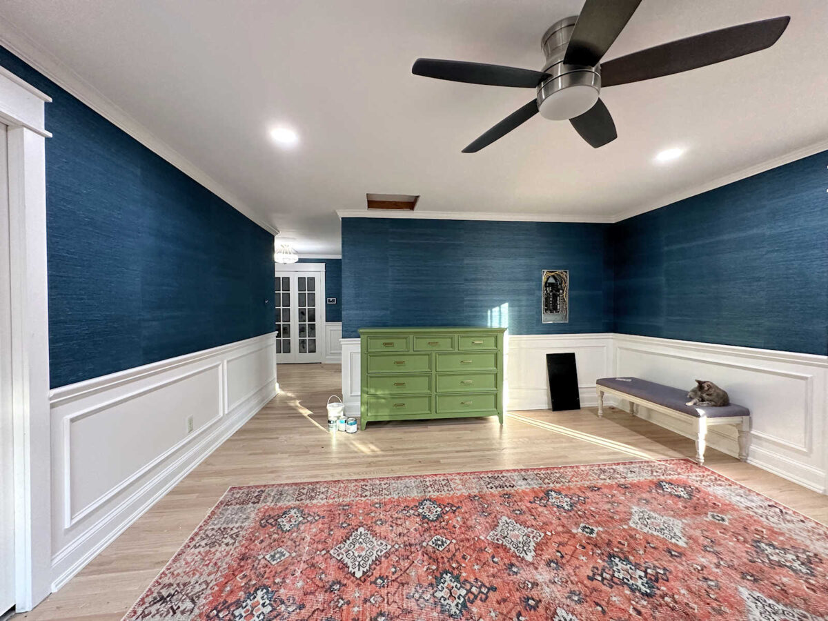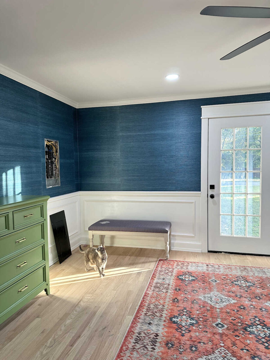 I’m so glad to have this huge project finished, and I couldn’t be happier with the outcome. Is it perfect? Absolutely not. But I tried to take my time and get it as perfect as possible, especially since this was my first time installing grasscloth the correct way. And it had been over 10 years since I installed grasscloth the last time when I installed it the improper way. (I literally used spray adhesive the last time.)