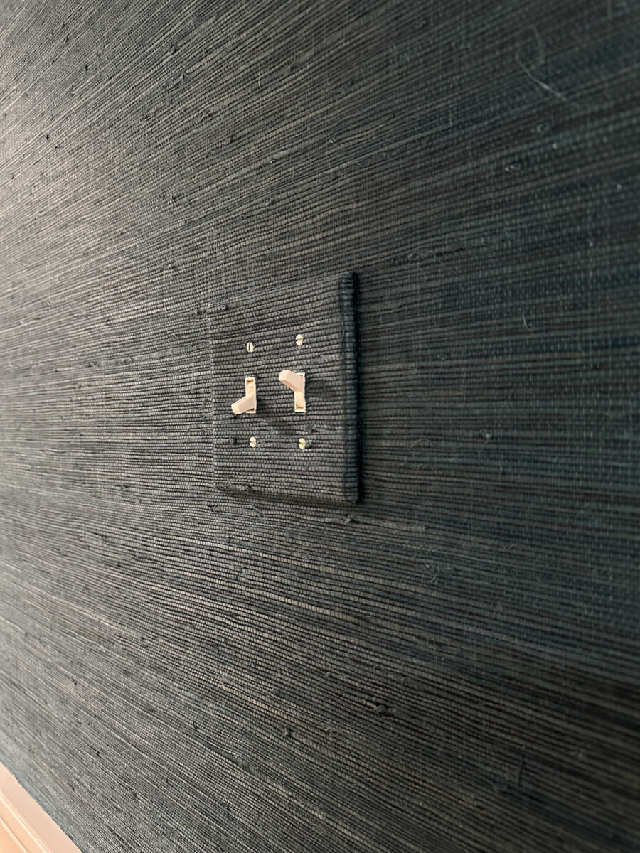 The problem with the plastic cover is that in order to get the screws tight enough to hold the bulky cover close enough to the wall around the edges, it pulls the plastic too tight in the middle making it slightly concave. And since the wallpaper has a bit of a sheen to it, it’s noticeable. But I like the corners on the plastic covers better than the rounded corners on the metal covers.