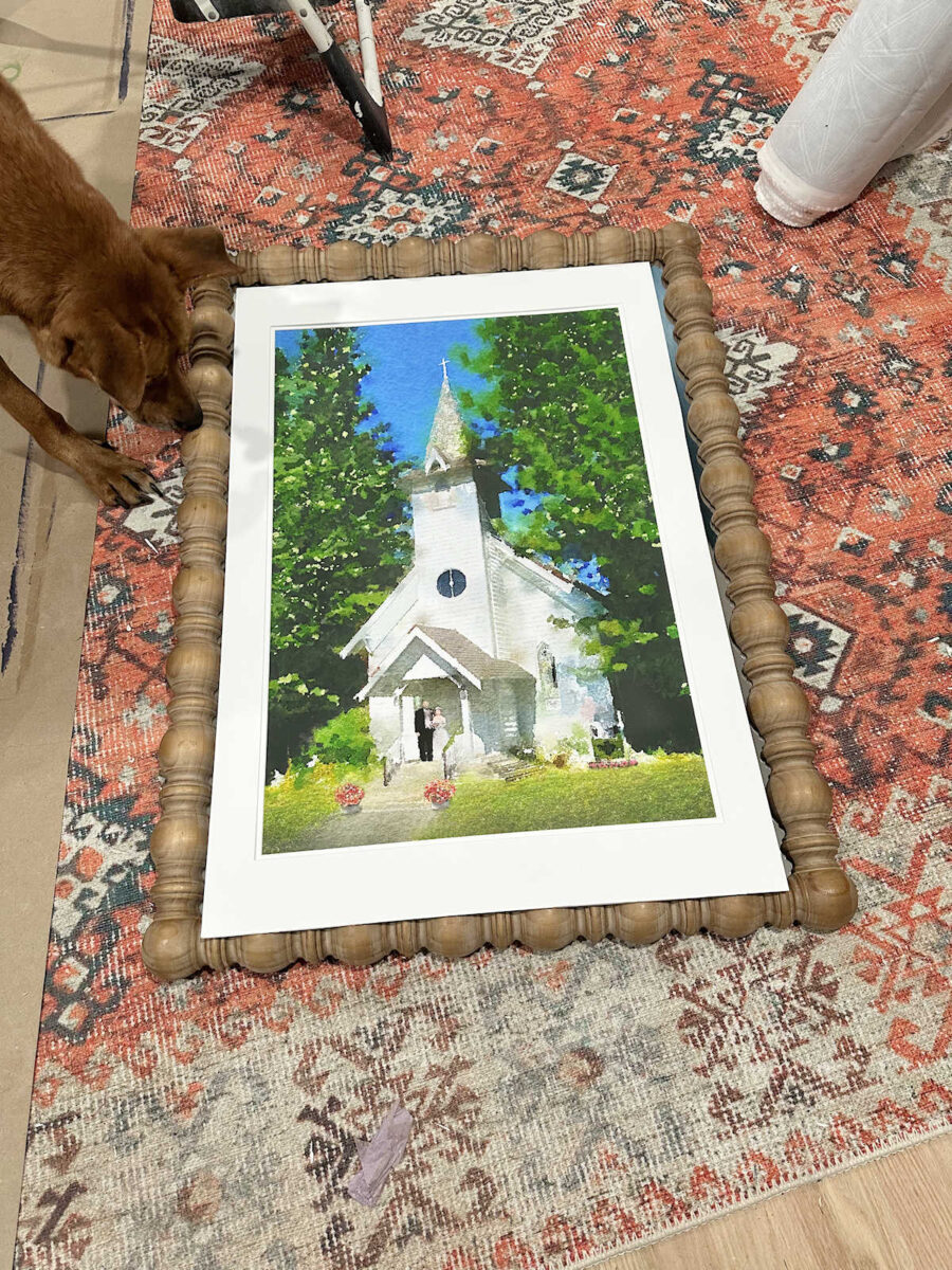 It took quite a bit of work to get that mirror out without breaking it, but I finally got it out and placed the picture inside the frame. Obviously, I’ll need a new mat, but y’all. I LOVE THIS.