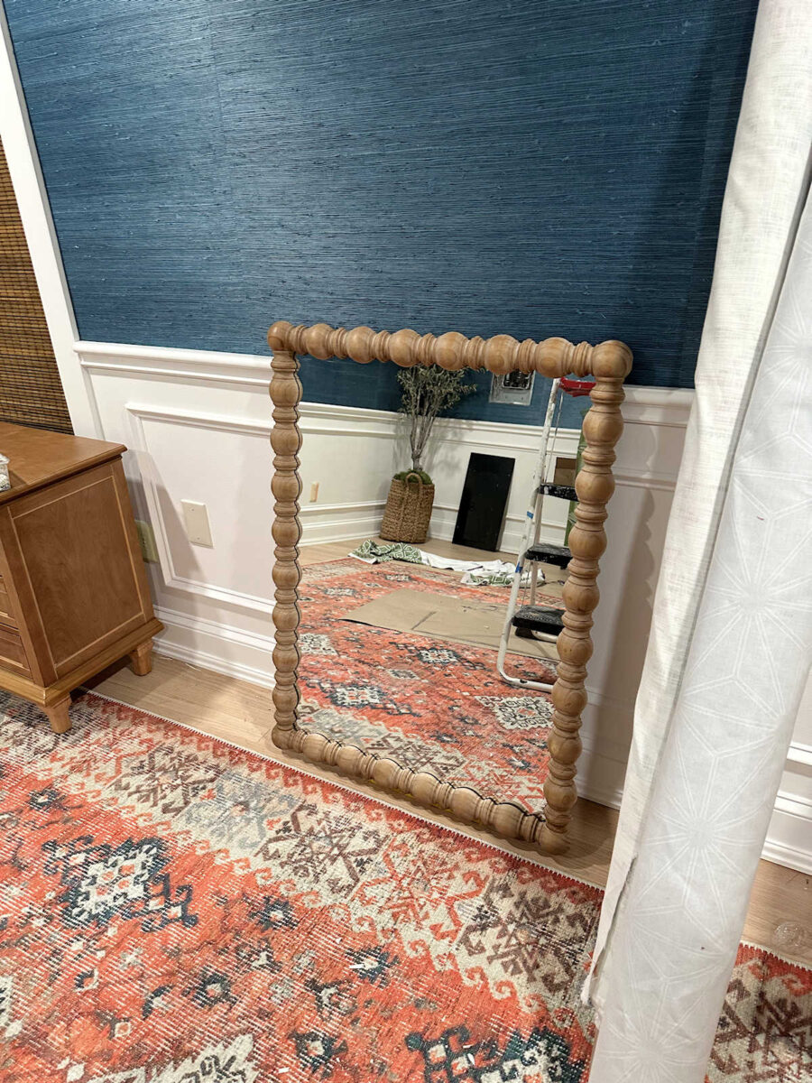 Anyway, I was really bummed and feeling very unmotivated until the mirror that I ordered from Wayfair was delivered. But to be honest, I was feeling kind of meh about that, too, because so many people in the comments said they didn’t like it. I was so excited about the frame until I read the comments. But then I opened the box, pulled out the mirror, and loved it even more than I thought I would.