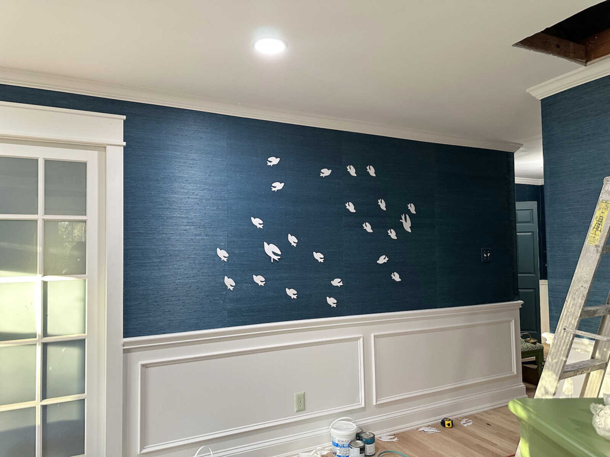 And because I like to go big, I’m going to use all of the birds I have. I still need to work out the exact design. I want to get it right on the first try since I’ll have to put nails into the wall to hang the birds, and I don’t want a bunch of extra holes in the wallpaper.