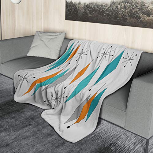Mid Century Modern Throw Blanket for Sofa Bed Couch Chair Soft Fleece Blanket Turquoise Orange Diamond 50 x 60 Cozy…